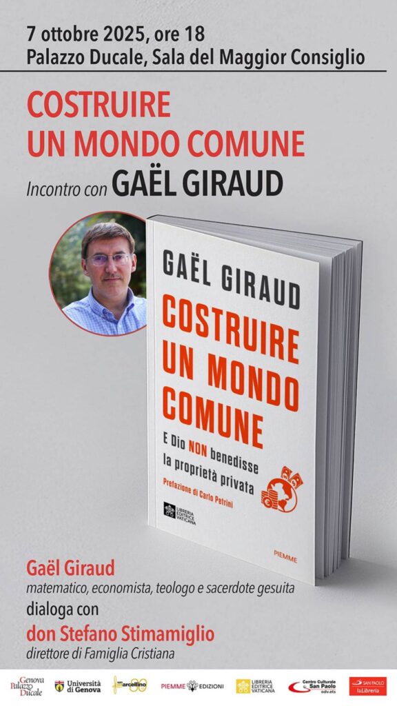Martedì 7 ottobre alle ore 18 presso la Sala del Maggior Consiglio di Palazzo Ducale a Genova, incontro e presentazione del libro “Costruire un mondo comune” con GAËL GIRAUD, matematico, economista, teologo e sacerdote gesuita. Dialoga con don Stefano Stimamiglio, direttore di Famiglia Cristiana