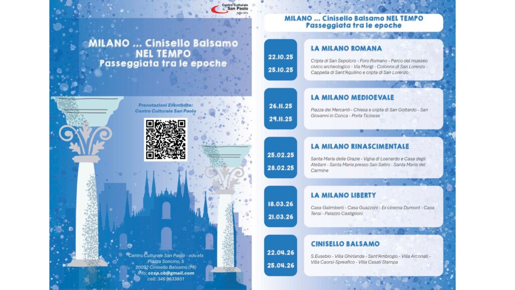 I prossimi appuntamenti Gli ultimi articoli: Il secolo dell’IA”: a Genova si parla di intelligenza artificiale e futuro 4 giorni ago Categorie: Appuntamenti, Genova24ª Rassegna organistica internazionale 4 giorni ago Categorie: Senza categoriaMilano... Cinisello Balsamo nel tempo 7 giorni ago Categorie: Appuntamenti, Cinisello Balsamo, Cinisello Balsamo (MI)Martedì biblici 2025-26 7 giorni ago Categorie: Appuntamenti, Cinisello Balsamo, Cinisello Balsamo (MI) Eventi coordinati dal Centro Culturale San Paolo
